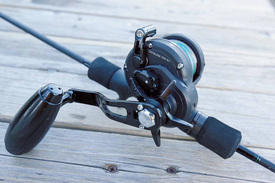 リールは同じく2020年のニューモデルとなるキャタリナ15H‐SJ。こちらもハイエンドシリーズのソルティガが先行でリリースしているが、PE2号を500mストックするラインキャパシティはもとより、ボディの剛性、巻きの安定感といった基本性能もソルティガ譲り。さらにハンドルはアームの長さを選択できるコンバーチブルタイプにするなど、使い勝手にもこだわっている。