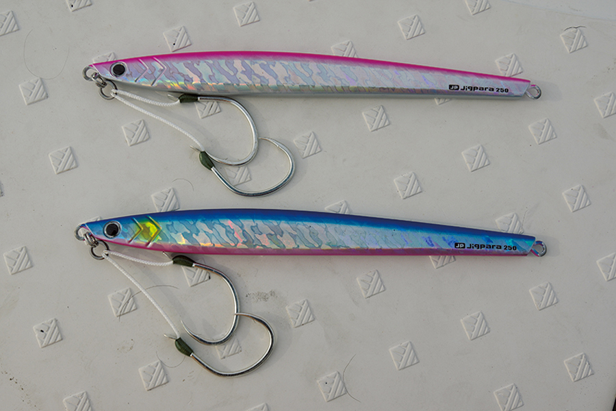 いっぽうデメリットは根掛かりの確率も上がってしまうことと、厳密にいえばハリの抵抗がジグの動きを抑制してしまうこと。エキスパートはそれを逆に利用して、ジグの暴れすぎを防ぐこともある。フロントを起点にして、状況に応じた使い分けをするのが望ましい。同様に、フロントとリアにそれぞれ何本のフックをセットするかというのも、掛かりやすさと刺さりやすさ、根掛かりの有無などを考慮して決めると良い。