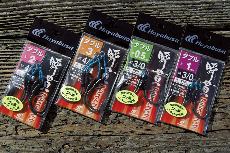 アシストフックはハリの形状まで言及すると膨大なテーマとなってしまうため、ここではブリに適したワイドゲイブを使うという前提で、そのセッティング等について考えてみたい。