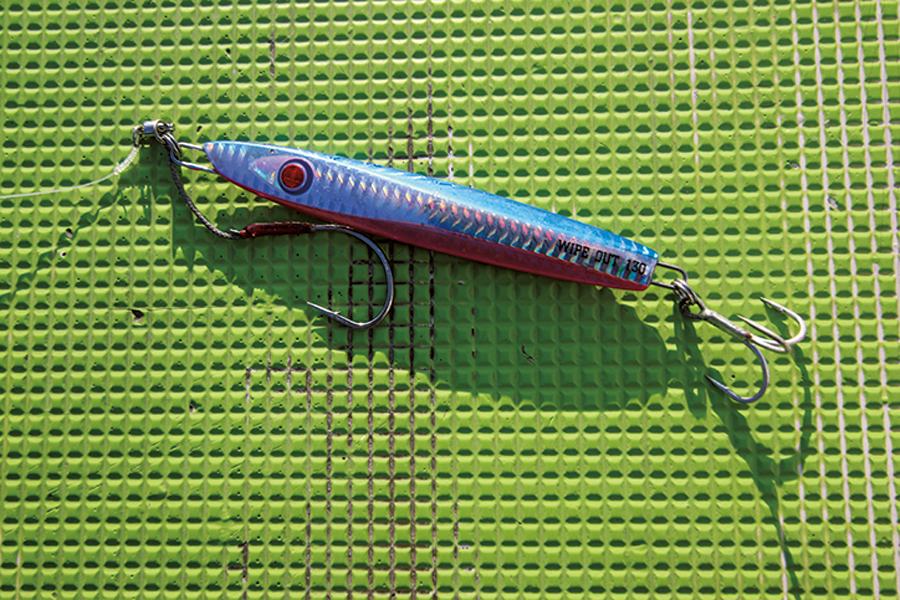 これらのことから、ジグはバーチカルで探る場合は、120g 、130gがメイン。ただ湾口は潮の速い時もあるため、さらに重い180gほどのジグも用意しておくと安心だ。またシャローをキャスティングで広く探ることも考慮すれば、100g以下の軽めのジグも数本は用意しておきたい。