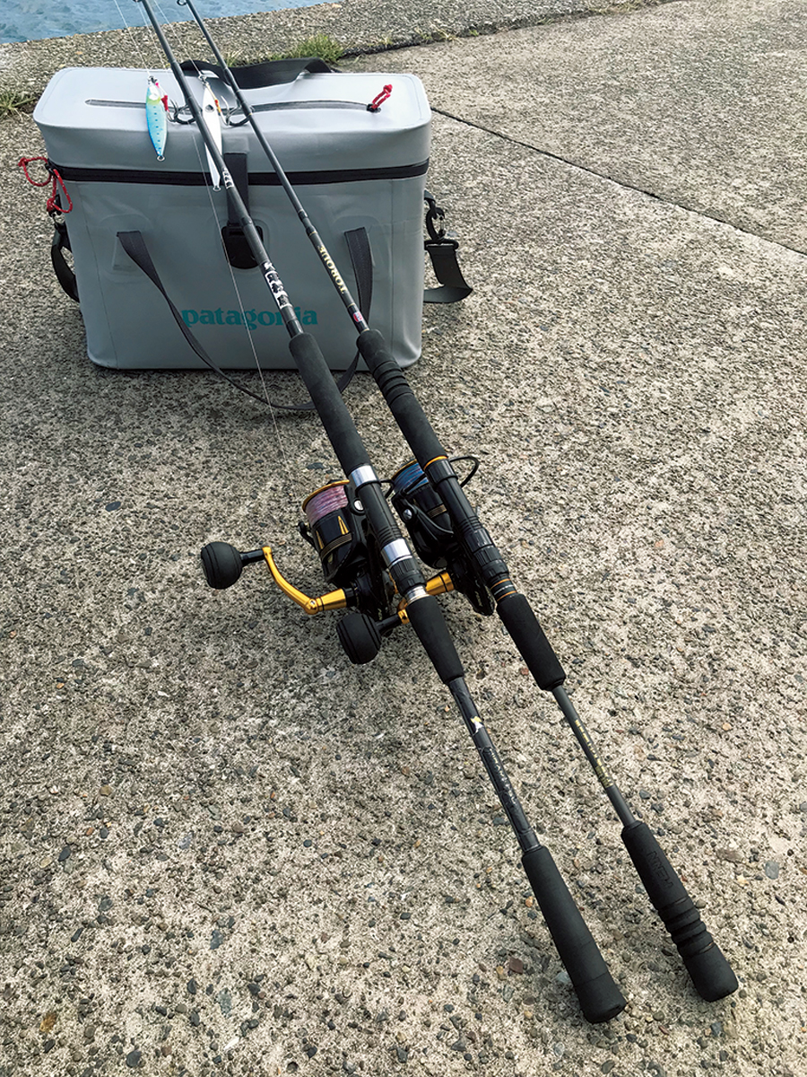 メタルジグのウエイトや形状はそのエリアの水深やベイトの様子、フィールドの状況によって選択するが、タックルの使い分けは、「線の動作」でメタルジグを長くトレースするスタイルか、「点の動作」でメタルジグをホバーリングさせて魚を寄せて見せて食わせるスタイルのどちらかになる。だから大きく道具を変えないことも私なりのスタイルであり、使い分けがはっきりしているので迷うことも少ない。