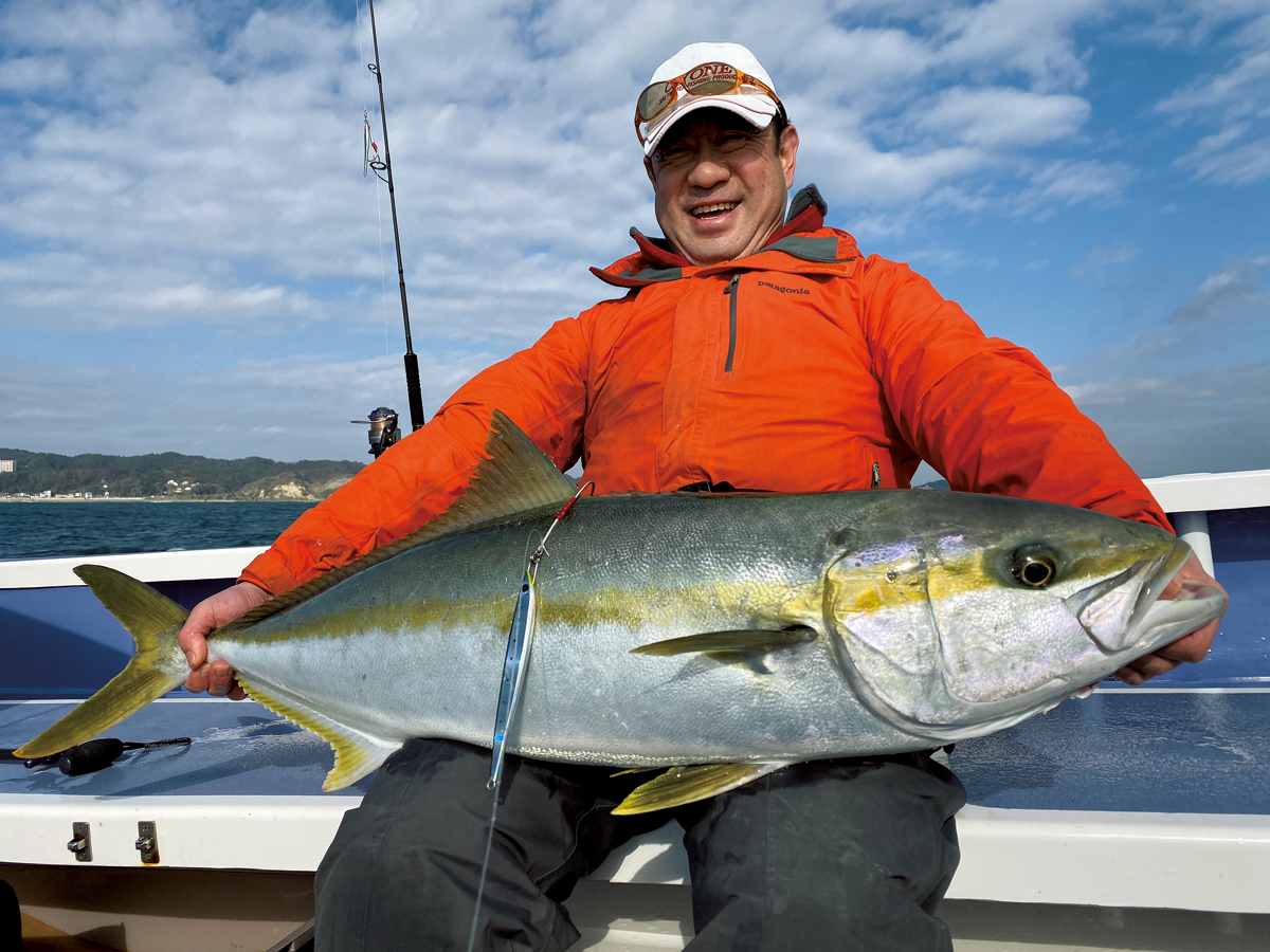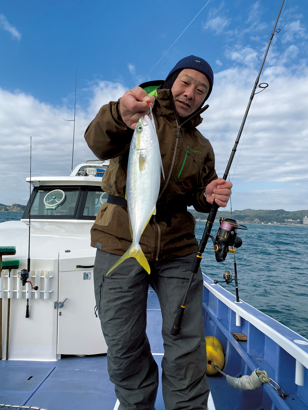 「水深16m。ポツポツした反応の中に、たまに大きな反応が映ります」と田村船長がアナウンスをくれる。水中の状況を頭で組み立て、ジグを柔らかく動かしながら探るのだが、全てイナダからのバイト。緊張と落胆が交互に続く。