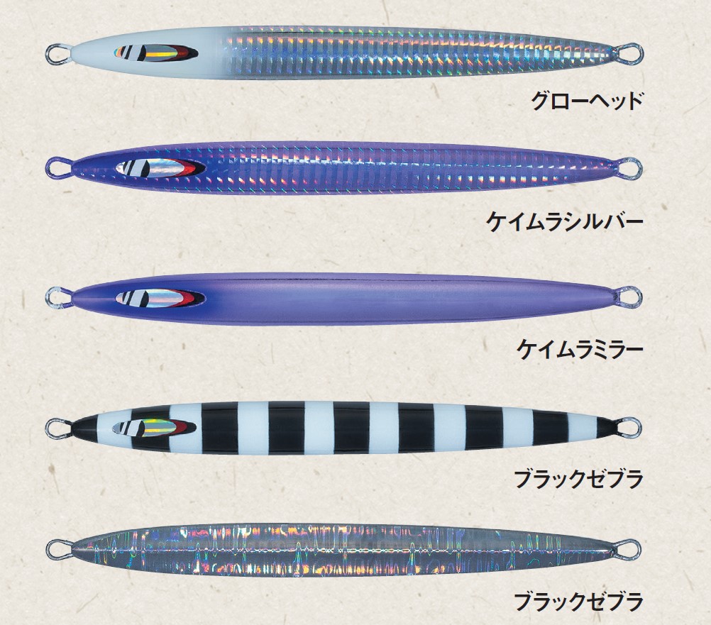 そして、タチウオパターンも含め、オールマイティに活躍するスロー系ロングジグ、ジグパラバーチカルロングスローにも新色が追加される。