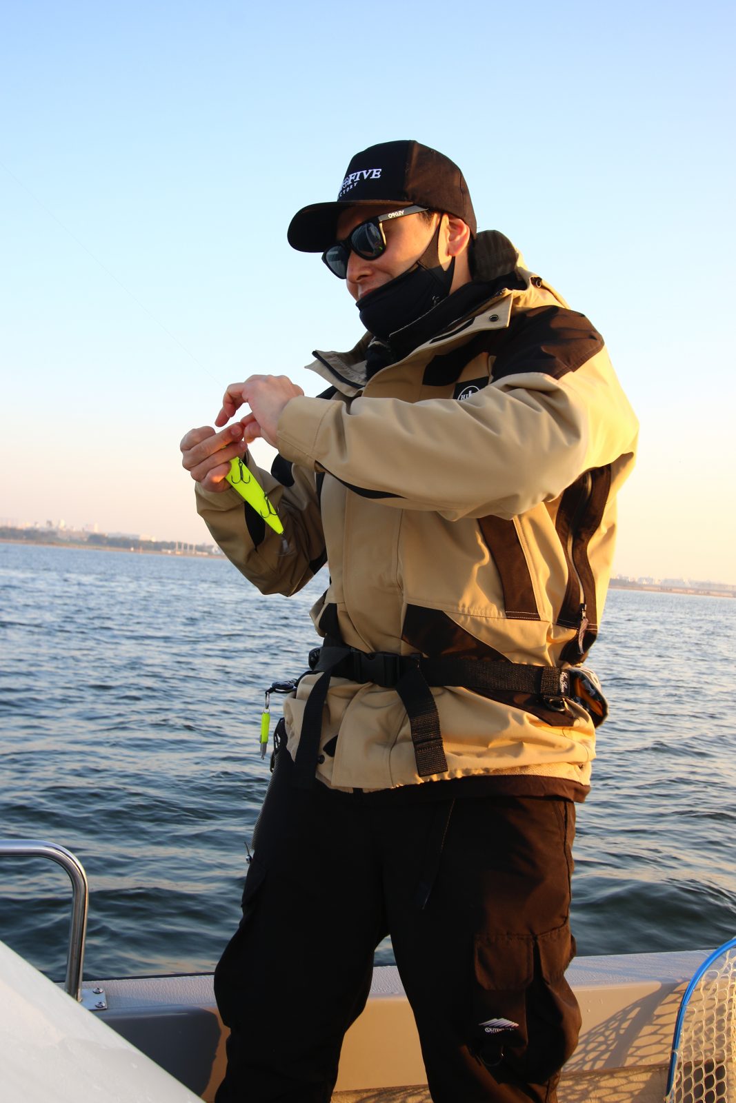 そしてこの日、最初に「ヒット!」の声を上げたのは山下であった。しかも1本目からナイスサイズの75㎝の良型。山下自身、満足の釣果だ。ヒットしたルアーは、山下がどこのメーカー製なのか分からないと言う鉄板バイブレーションルアー(後に調べたところジャクソン製と判明)。山下は最初こそ大型ルアーを使用していたものの、徐々にルアーをサイズダウンしていき、当たりルアーに辿り着いたのである。そしてそこから、山下は連発ヒットへ演出し、最後の最後まで釣り続けたのである。