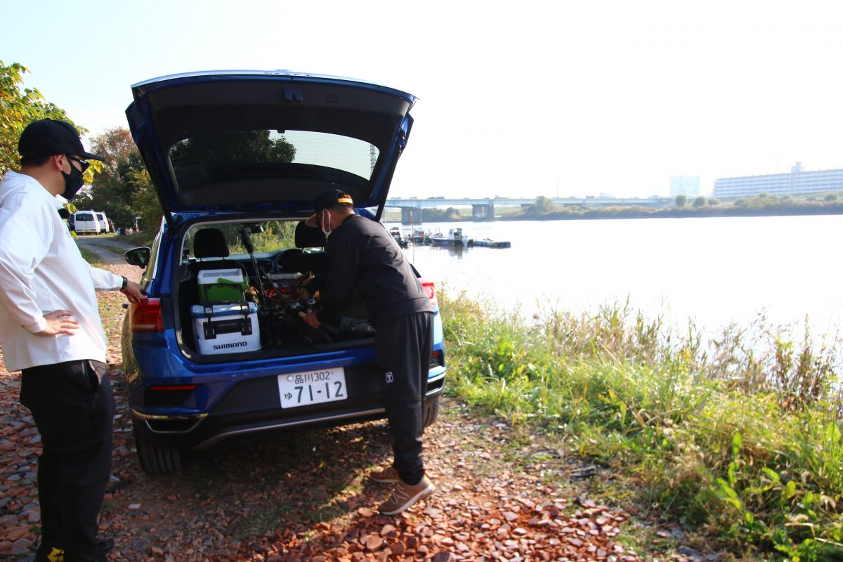 お昼まで釣りを続け満足した二人は、帰港とともにフォルクスワーゲンのSUV「T-ROC」に乗り、少しドライブすることに。フォルクスワーゲン社が釣行のサポートとして車を貸してくれたのだ。釣り竿、釣り道具類がしっかりと入る荷台を持つ「T-ROC」。釣り人にとって、様々な荷物を運ぶことができる車は必需品である。しかも、「T-ROC」は大きすぎないことから、釣り場の周りの細い道の走行もしやすく、しかも乗り心地も抜群とのこと。