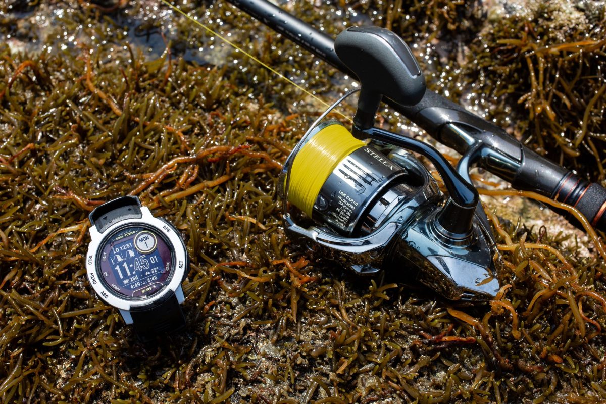 「いやあ、暑いですね。でも、Instinct 2 Dual Powerが充電されていると思えば、まあ耐えられますね(笑)。時計ではスマホみたいにバッテリー残量を気にしたくないですからね。釣行中にバッテリーが切れて利用できない、ということになれば、釣りのプランが狂ってしまう可能性もあります。釣りに出ている間、早朝に出発して夜に帰宅するくらいの間は、バッテリーの心配はしたくないですよね」