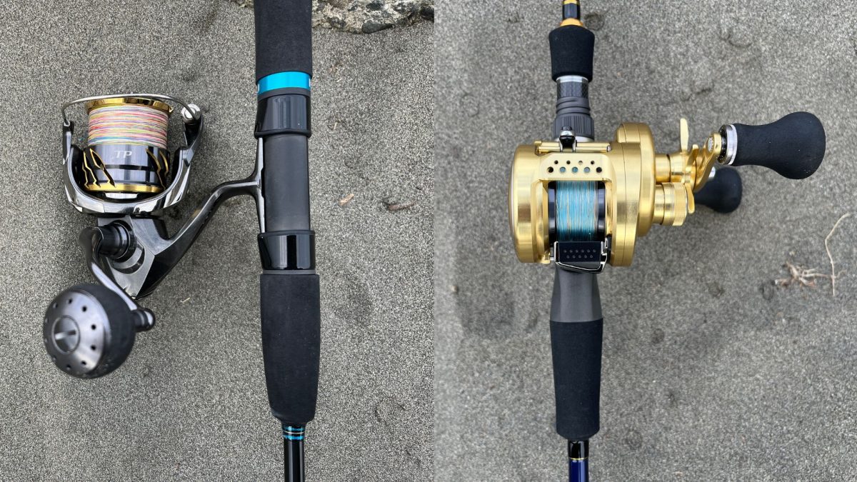 スーパーライトジギングでは、スピニングリール、ベイトリール両方を使用できるが、初心者の方は、操作しやすいスピニングリールから使用することをオススメする。