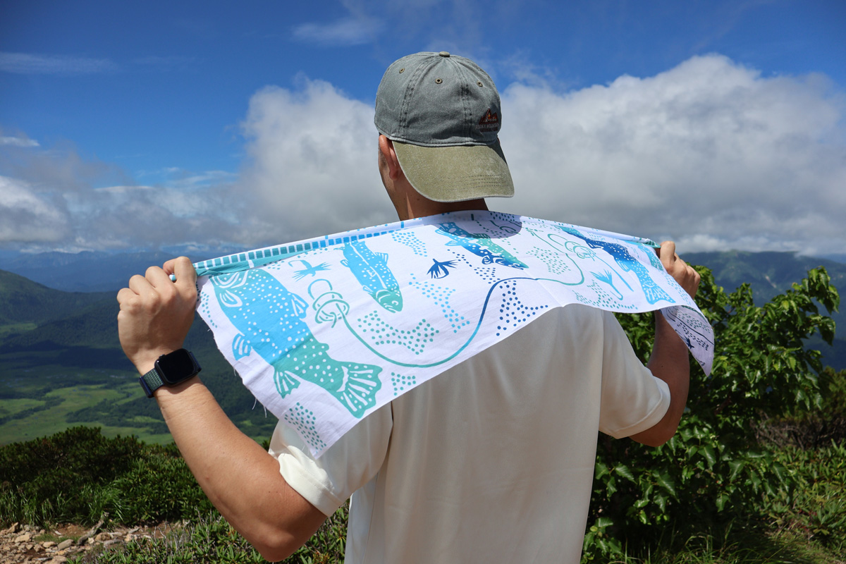 適度な厚みで綿100%の手ぬぐいは、乾きやすく使い勝手もいいので、アウトドアにもってこい!
