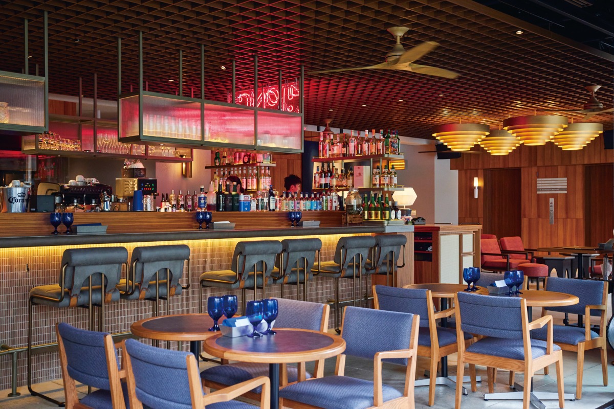 その国際通りから横道に入った程近くに佇むのが、ラグジュアリーシティホテル「サウスウエスト グランドホテル」。寝泊りできれば十分という勿体ないホテル利用ではなく、旅という非日常体験をホテルでも味わうことができる新たな沖縄ステイの拠点だ。国際通りから徒歩1分、空港から車で12分という利便性に加え、地上12階の建物内には、那覇市内を一望するプール、夕日を見渡すジャグジー、フィットネスやラウンジなど、滞在時間を豊かに彩る施設が揃っている。古き良きアメリカを感じる内装デザインやインテリア、温かみのある木材を随所に配した空間も、訪れる人々に暮らすような安らぎを与えてくれる要素の一つ。