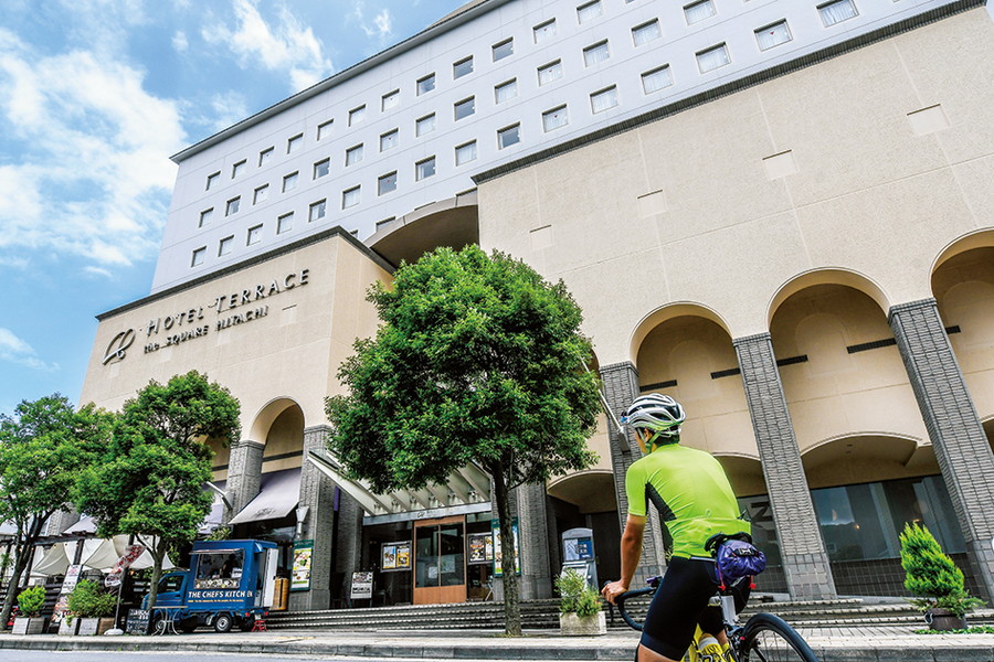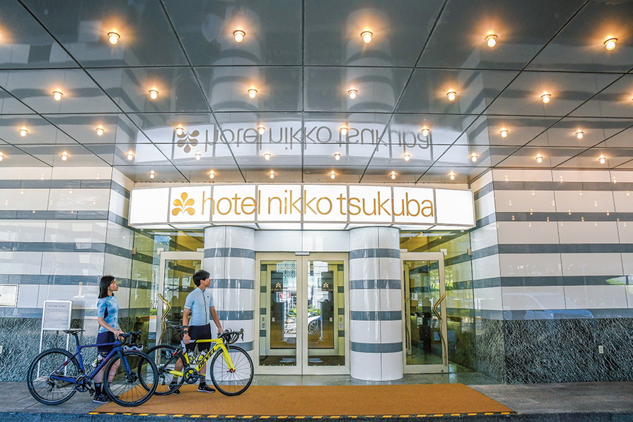 土浦駅直結のホテル。自転車持ち込み可のサイクルルーム、スタンドや工具がそろったメンテナンススペースなどがうれしい。