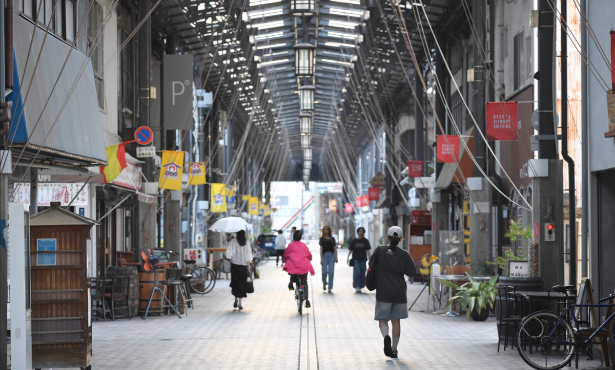 東海道新幹線「名古屋」駅から、東側へ15分ほど歩いた場所に、名古屋で一番古い商店街「円頓寺商店街」とそれに連なる「円頓寺本町商店街」がある。一見は昭和の面影を残すレトロな風情ある商店街だが、明治創業の和菓子店やおなじみの名古屋めしの店舗が軒を連ねる一方、洒落たスイーツや異国情緒なバインミーまで、良い意味で多様性を感じさせる店舗の顔ぶれは、ここが名古屋駅と観光名所である名古屋城との動線にかかり、観光客やインバウンドが多く訪れることと無関係ではないだろう。天井から吊るされた紐を操作することで天窓を開閉できるアーケードのつくりもこの空間に独特な表情を与えている。