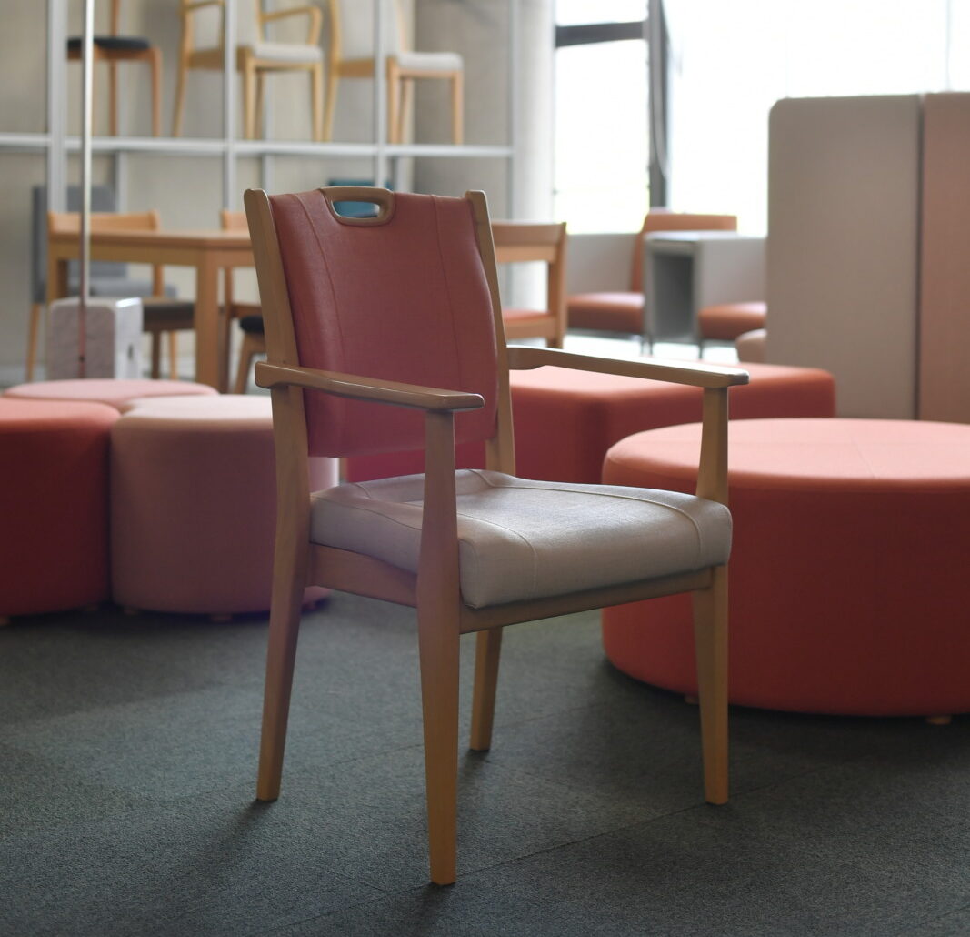 流れが変わったのは1996年、名古屋大学と産学共同研究の一環として、病院、高齢者施設用の家具開発をになったことに始まる。業界が生産拠点を海外へ移し産業の空洞化が進む中、コスト安の海外製品と競合しない、国内メーカーとしての生き残り策を模索する彼らは、その後医療介護用途の業務用椅子に注力。大手病院や巨大資本の介護施設との共同開発、様々な特許の取得などを通じ、国内におけるこの分野のリーディングブランドとしての地位を確立したのだ。