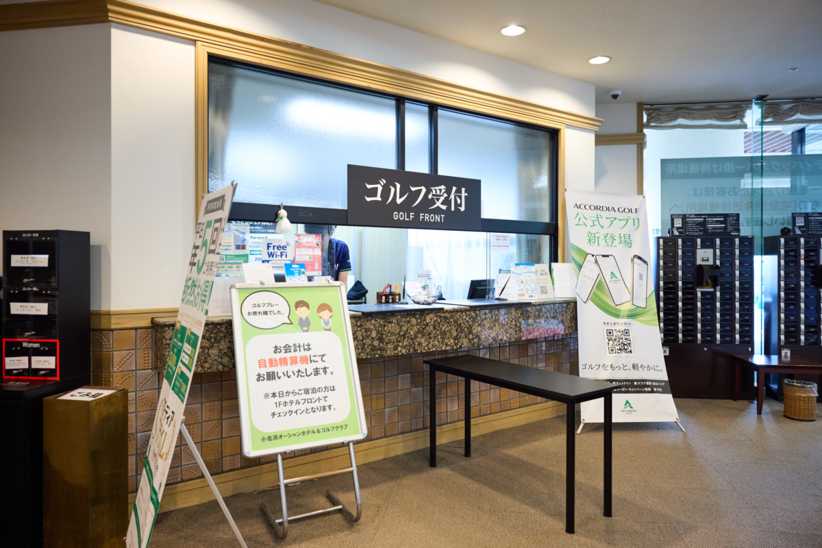 部屋に荷物を置いてゴルフウェアに着替えたら、ホテルB2Fのスターティングロビーへ。