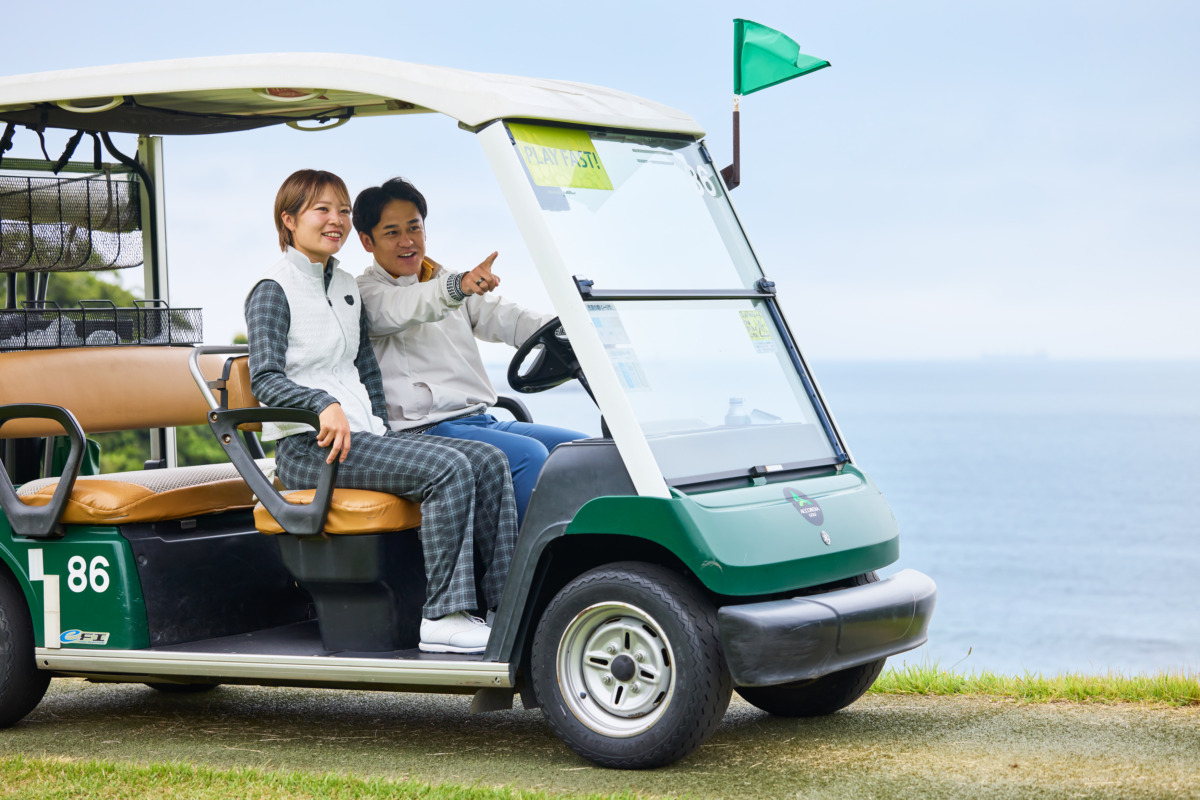GPSナビ付きカートはフェアウェイに乗り入れ可能。快適なプレーが楽しめる。(コンディションによって乗り入れ不可の場合あり)