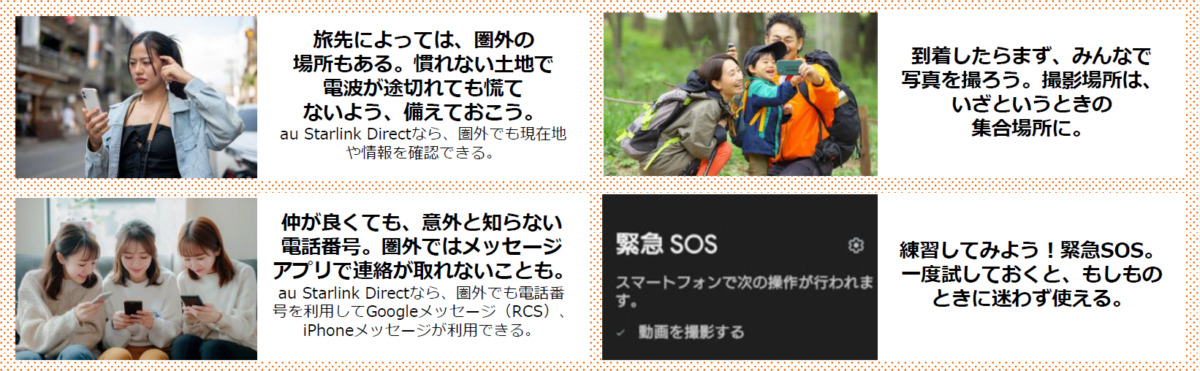 もしもの圏外でも連絡できる:au Starlink Direct