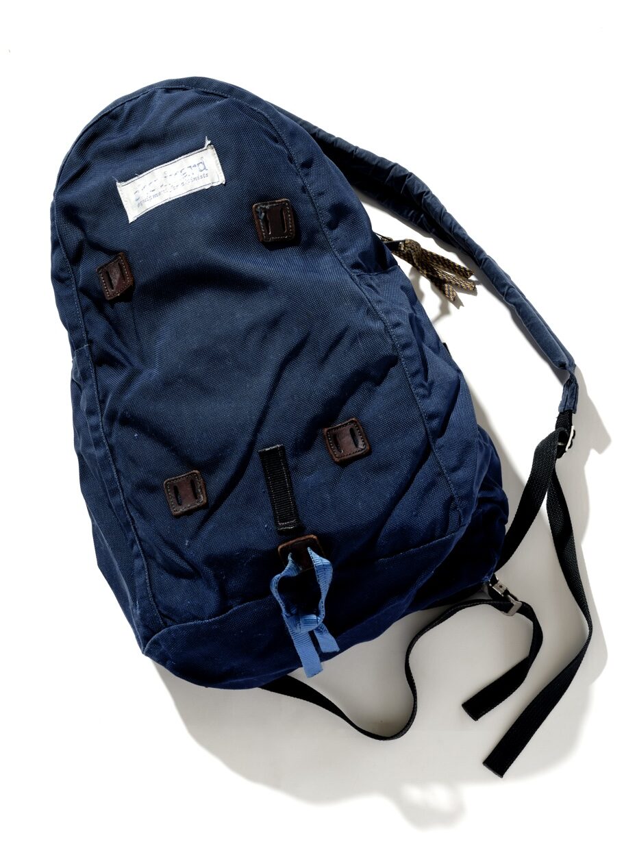 「パタゴニアの前身ブランドであるシュイナード・イクイップメントが、’70年代に発売した名品クライミングパック『クレイグ・デュー』。ずっと探していたモデルで、最近やっと状態の良いものに出合えました。デザインがシンプルで、単純に格好いい。僕は服もモノも使っちゃう派。貴重なモデルですが、車移動の際も自転車に乗るときも、街で愛用しています」