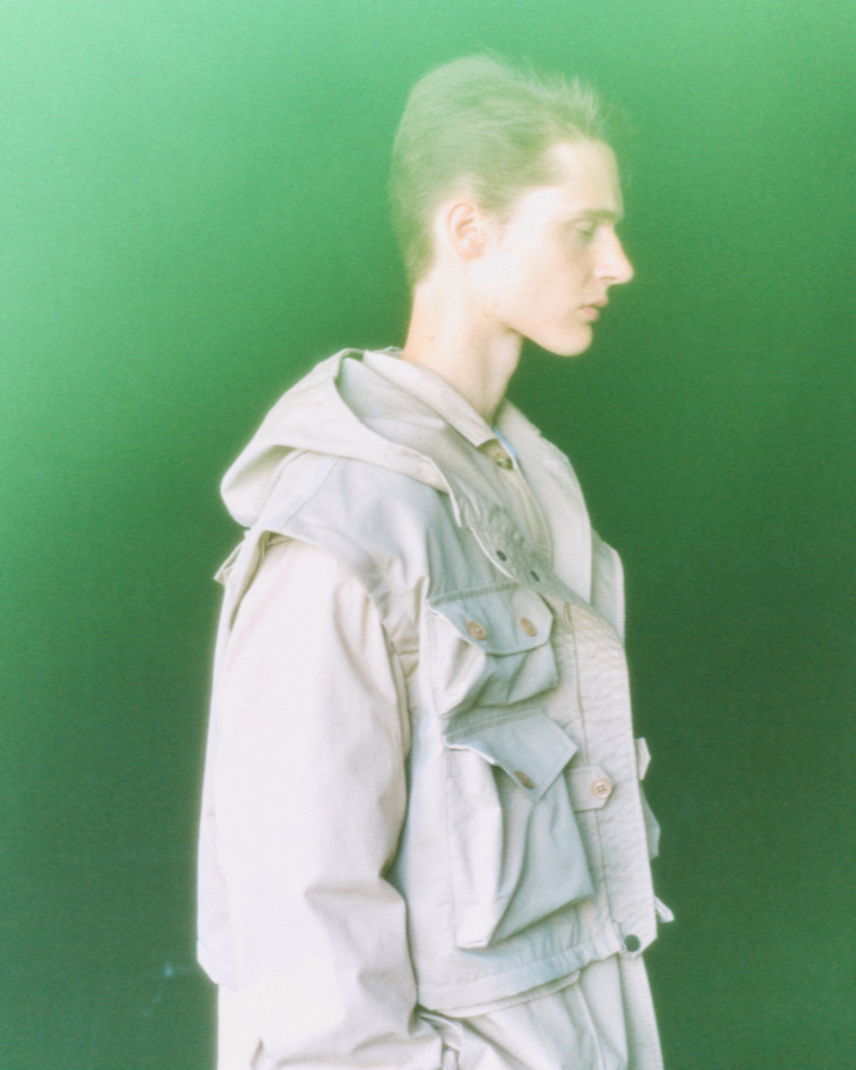 袖を外し、フードを取り、パーツを重ねるたびに、一着が無数の表情を見せる。